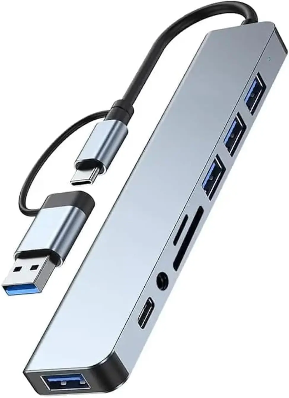 - Multiple Ports for Versatility – Includes 4 USB ports (1 x USB 3.0, 2 x USB 2.0), 2 card slots (SD/TF), 1 USB Type-C port, and 1 x 3.5mm audio jack for various device connections.