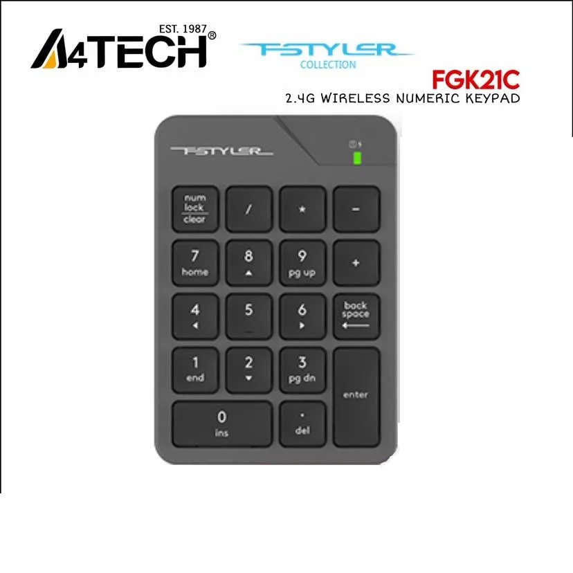A4TECH FSTYLER FGK21C 2.4G Wireless Numeric Keypad Rechargeable Number pad – Auto-Channel Sort – USB Type-C Charging Cable -18 Low-profile Keys -Windows 7/8/8.1/10/11