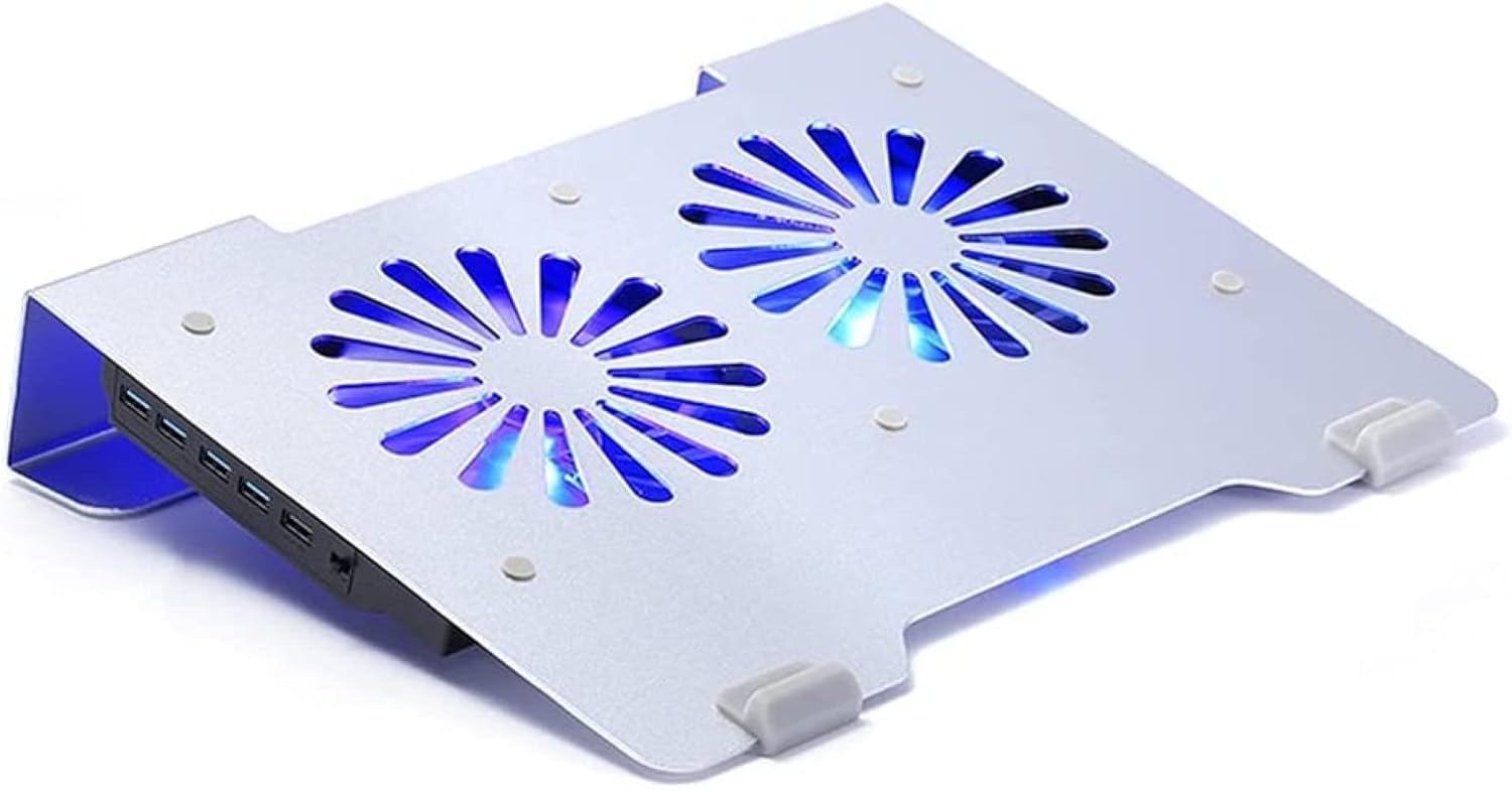 Aluminum Alloy Gaming Laptop Cooler Cooling Pad | 2 Quiet Fans | Support Up to 17.3 Inch Heavy Notebook, Laptop | 5 USB PORTS | 2 Big fans | 380 x 285 x 70 mm | Silver