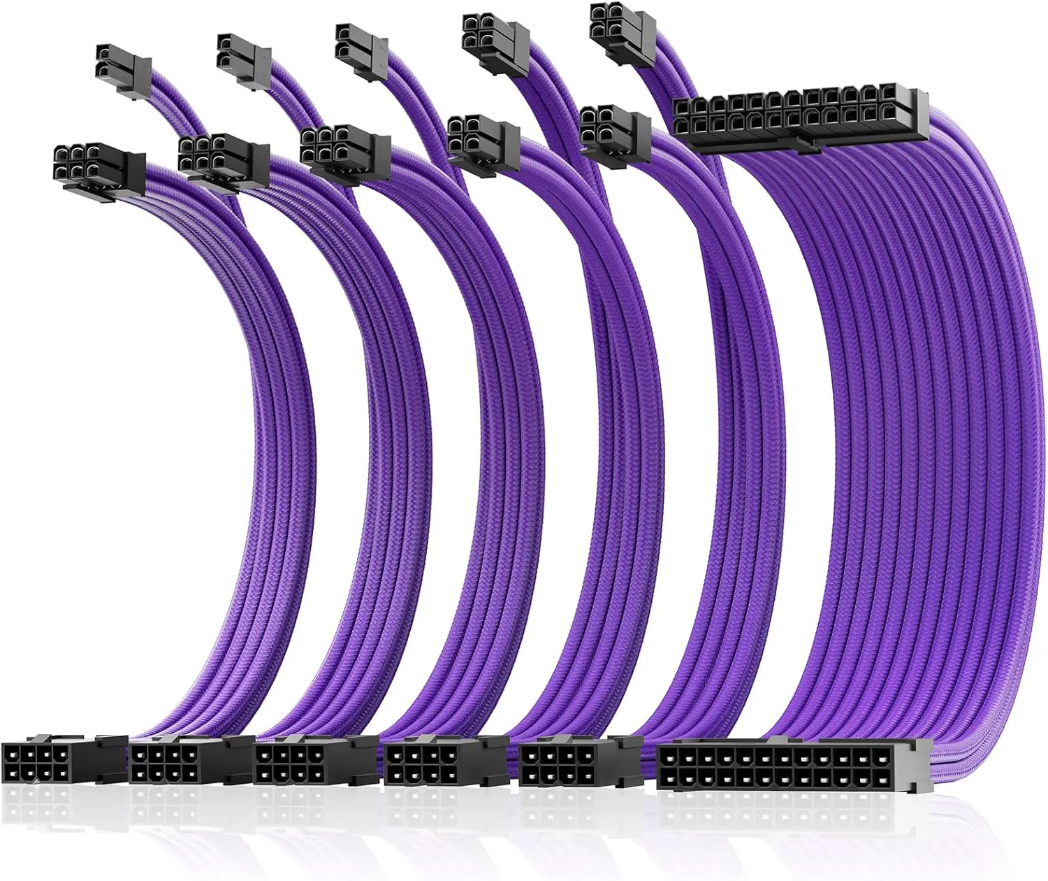 - Complete Extension Kit: Includes 1 x 24-pin ATX cable, 2 x 4+4-pin EPS CPU cables, and 3 x 8-pin PCI-E (6+2) GPU cables with 4 cable combs for a clean look.