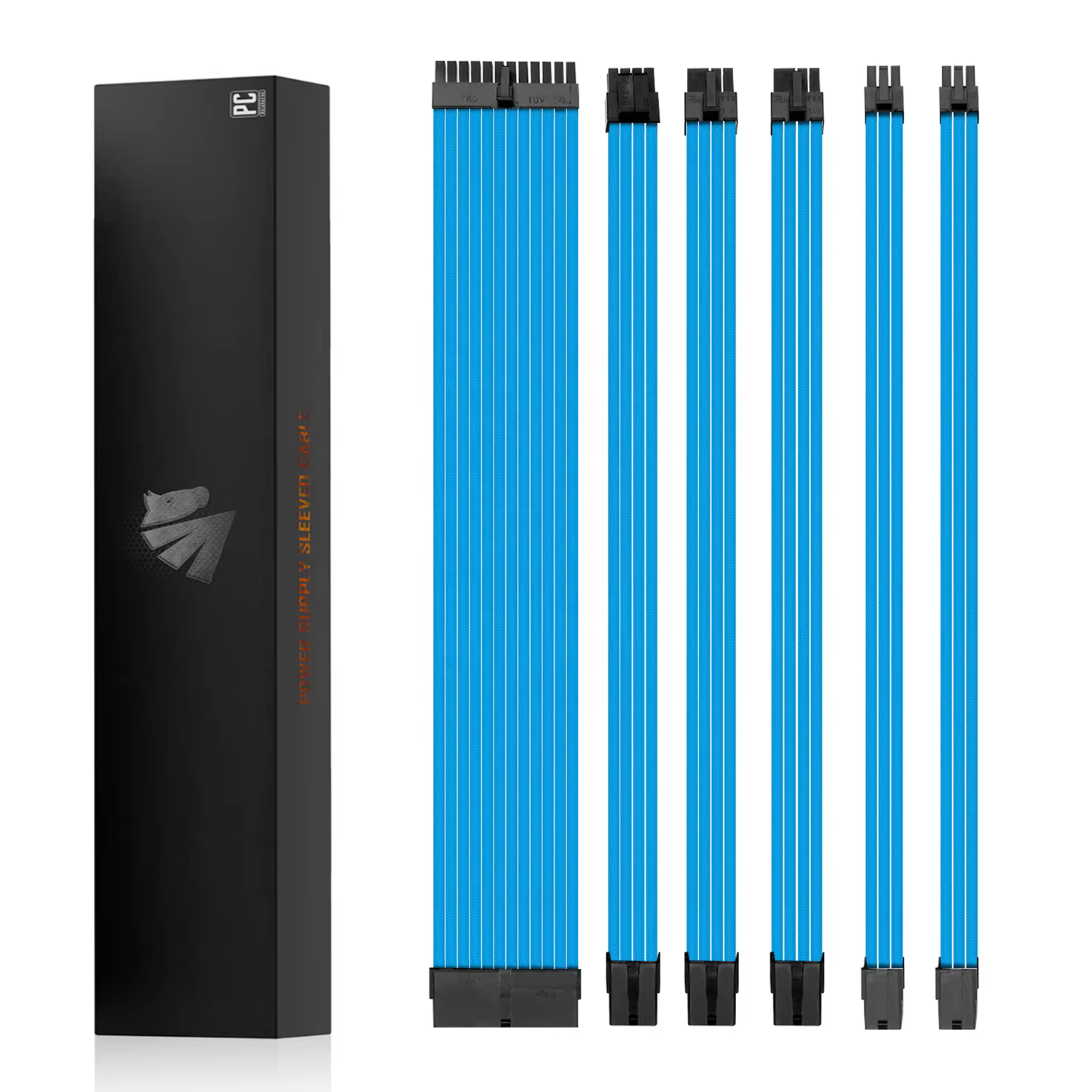 AsiaHorse 18AWG Blue Sleeved PSU Extension Cable Kit – 6 Pack, 300mm, PET Braided, Phosphor Copper Terminals, Durable & Flexible Cable Management Solution