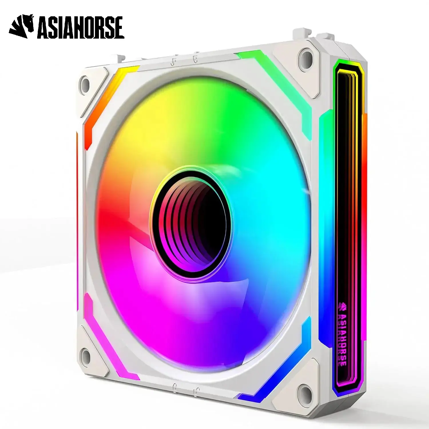 ASIAHORSE COSMIQ ARGB 120mm PWM Fan (Forward, White, 1-Pack) – Daisy Chain Design, 2000 RPM, 68.5 CFM Airflow, HDB Bearing, Music Sync Lighting, 50,000h Lifespan