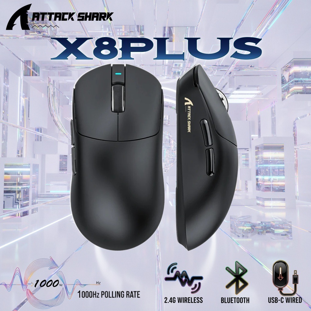 ATTACK SHARK X8 PLUS Wireless Gaming Mouse With PAW3395PRO Sensor, 40,000 DPI, 1K Polling Rate, Tri-Mode Connectivity, 55g SUPERLIGHT, Nano Ice-Feel Coating, And 800mAh Battery | BLACK
