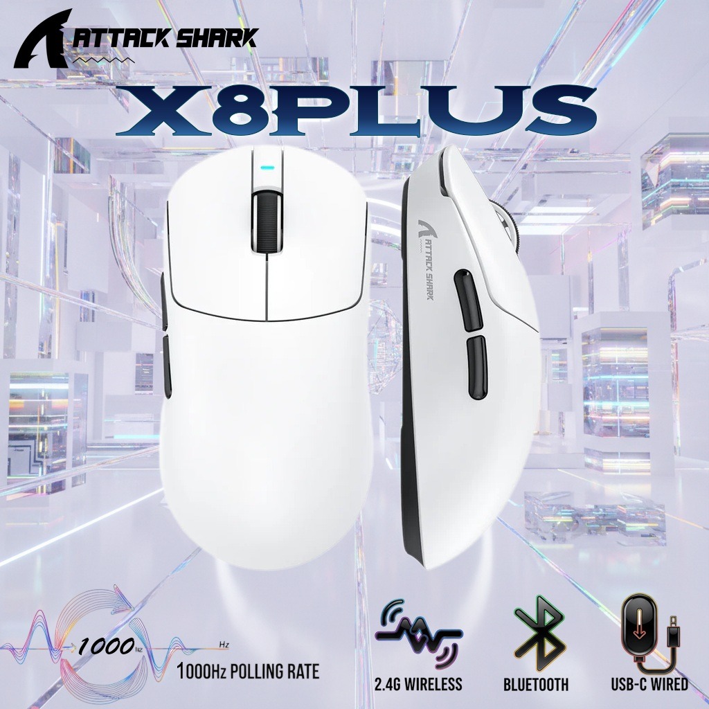 ATTACK SHARK X8 PLUS Wireless Gaming Mouse With PAW3395PRO Sensor, 40,000 DPI, 1K Polling Rate, Tri-Mode Connectivity, 55g SUPERLIGHT, Nano Ice-Feel Coating, And 800mAh Battery | WHITE