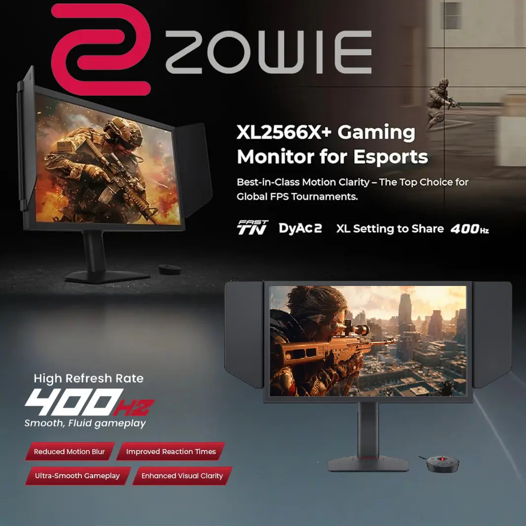 BenQ Zowie XL2566X+ 24.1″ Fast TN 400Hz Esports Gaming Monitor with Motion Clarity DyAc2, 1080p, Shielding Hood, XL Setting to Share, Industrial Ball Bearing Height Adjustment for Esports Performance