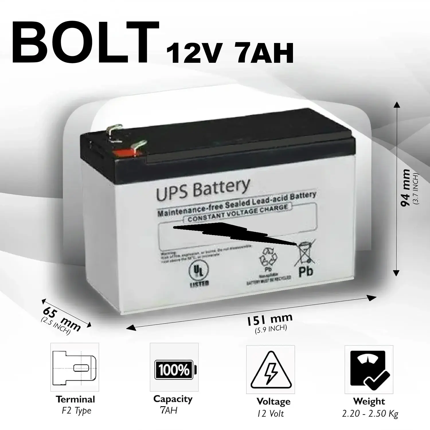 BOLT UPS Battery 12V 7AH SLA Rechargeable Replacement Battery with T2 Terminal for UPS Back Up , Electric Scooter, Emergency Lighting, Wheel Chair, and More