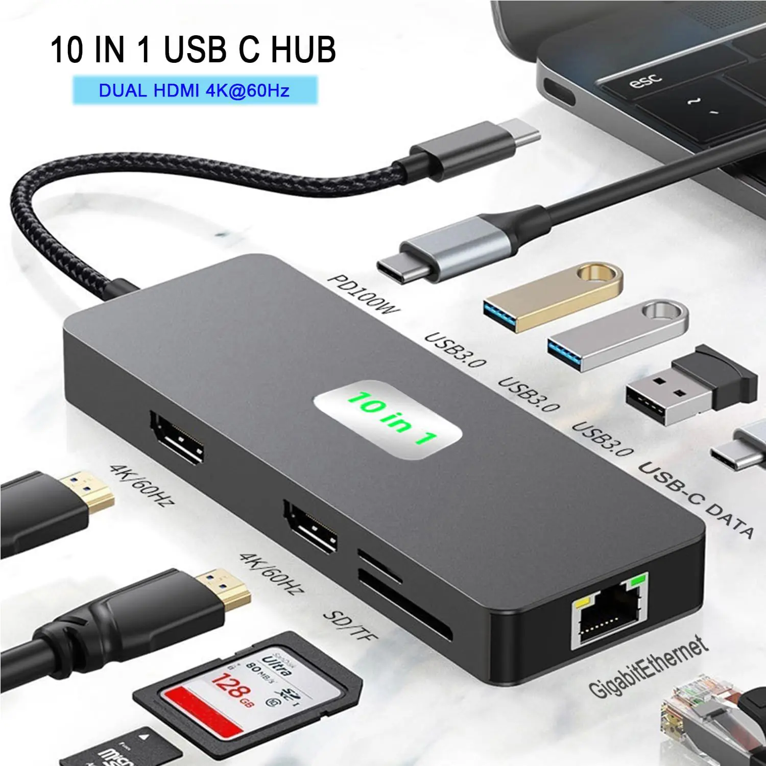 BYL 10-in-1 USB C Docking Station With Dual 4K HDMI, 100W PD Charging, 5Gbps USB 3.0, Gigabit Ethernet, SD/TF Reader, Metal Build, Plug & Play For Laptops & Smartphones