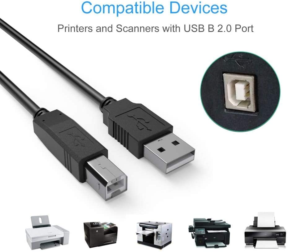 3m Printer Cable USB 2.0, Type A Male to B Male Cord for Arduino Electric Piano, DAC, Vinyl Cutter, USB 2.0 External Hard Drives, Printer Scanner of HP, Canon, Lexmark, Epson, Dell, Xerox