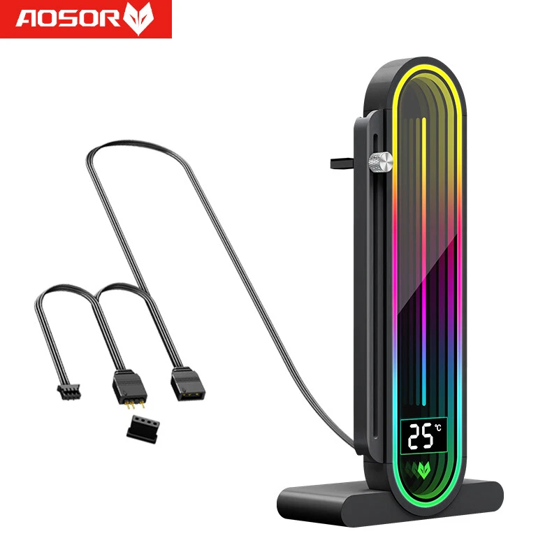 COOLMOON GH3 Pro 5V 3-Pin ARGB Aluminum Graphics Card Bracket With Smart Temperature Display, Infinity Lens Lighting, Magnetic Base, Adjustable Height Support | BLACK