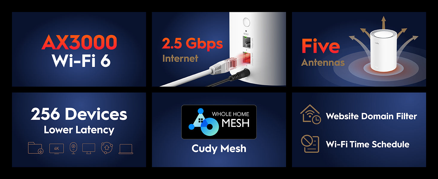 | Mesh Technology | Cudy Mesh with Wired/Wireless Backhaul |