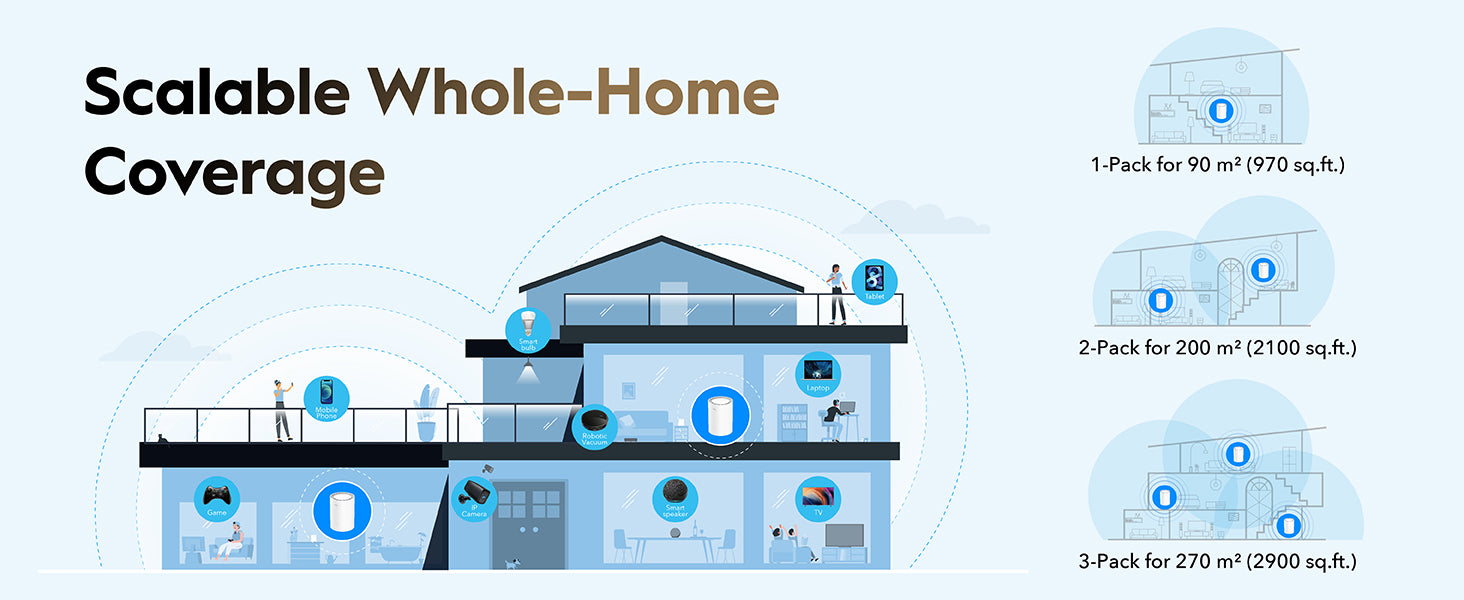 | Coverage (2-Pack) | Up to 200 m² (2100 sq ft) |