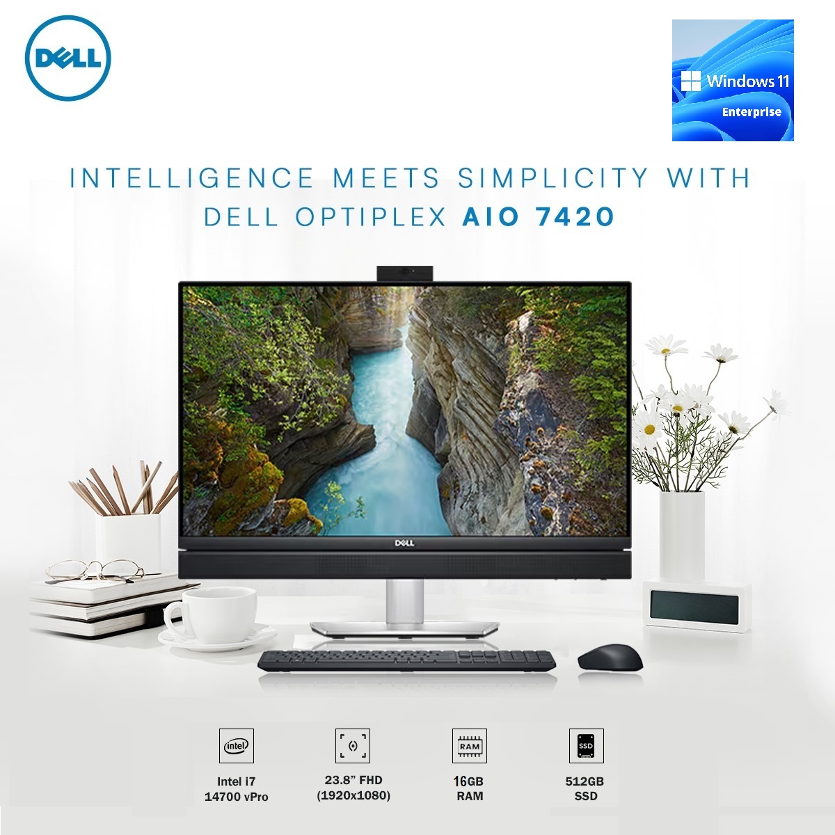 DELL OptiPlex 7420 All-in-One Plus Intel® Core i7 14700 vPro® | 16 GB DDR5 RAM ; 512 SSD | 24 inch FHD IPS Display | Windows 11 Enterprise | with Dell Wired Keyboard and Mouse | Hight Adjustable , Tilt Pivot Stand | GREY & SILVER OPEN BOX