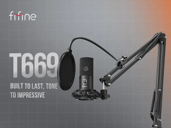 FIFINE T669 USB Microphone Bundle with Boom Arm & Shock Mount – Plug & Play Condenser Mic Kit for Streaming, Recording, Podcasting, Voice-Over & Gaming (Black)