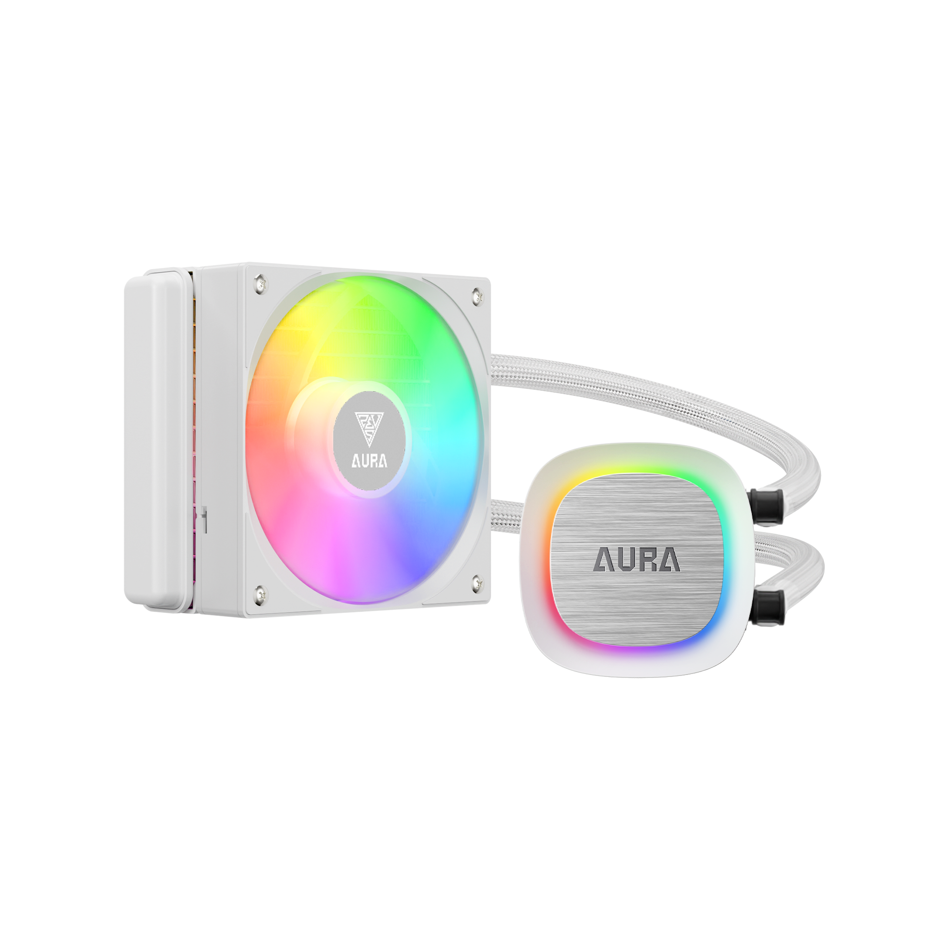 AURA GL120 V2 Series is available in black and white editions. With its 12-slot 10-pole motor, upgraded copper base, and optimal fluid routing system, the cooler boasts top-tier in-class performance. The cooler also features hidden cable routing, a fully rotatable pump housing with brushed plating, a pump head with indirect lighting, and 30 built-in lighting effects.