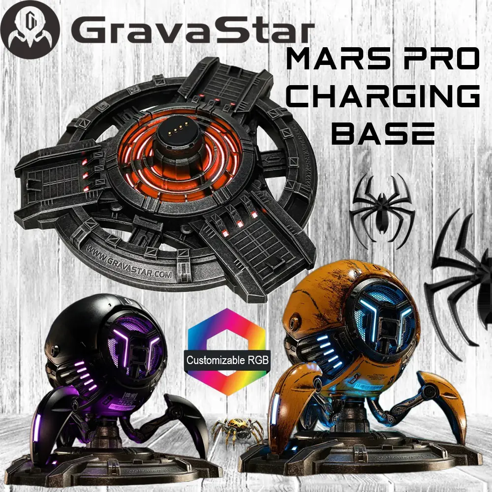 GravaStar Mars Pro Charging Base with RGB Lighting, Type-C Magnetic Dock, 6 RGB Lights, 3 Light Modes, Stable Charging & Sync for Mars Pro Bluetooth Speakers | BLACK