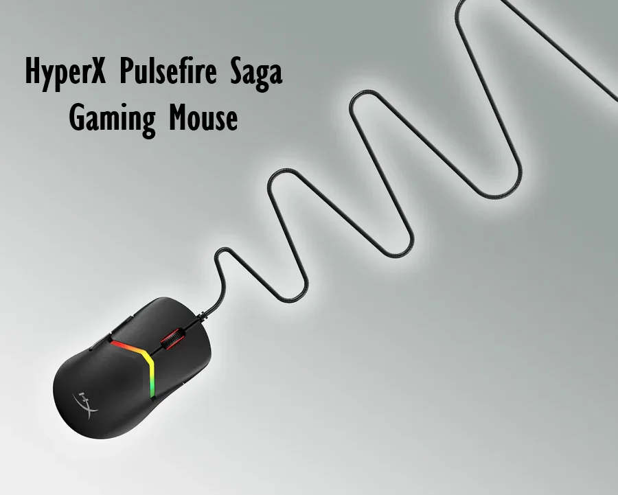 HP HyperX Pulsefire Saga RGB Wired Gaming Mouse – 26K DPI, 8K Polling, Optical Switches, Modular Design, RGB Lighting, HyperFlex 2 USB-A Cable