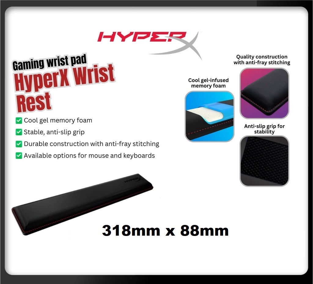 - . Built to last, the HyperX Wrist Rest features anti-fray stitching, and is constructed with a focus on quality, so it’ll provide long-lasting comfort session after session.