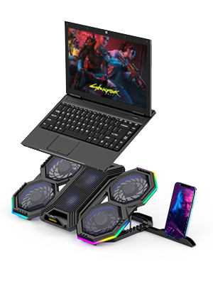 Laptop Cooling Pad, Gaming Laptop Cooling Stand with RGB Light, 6 Quiet Cooling Fans, 6 Height Adjustable and Dual USB Ports for 11 to 15.6 Inch Laptops , Extra iPad/Phone Stand
