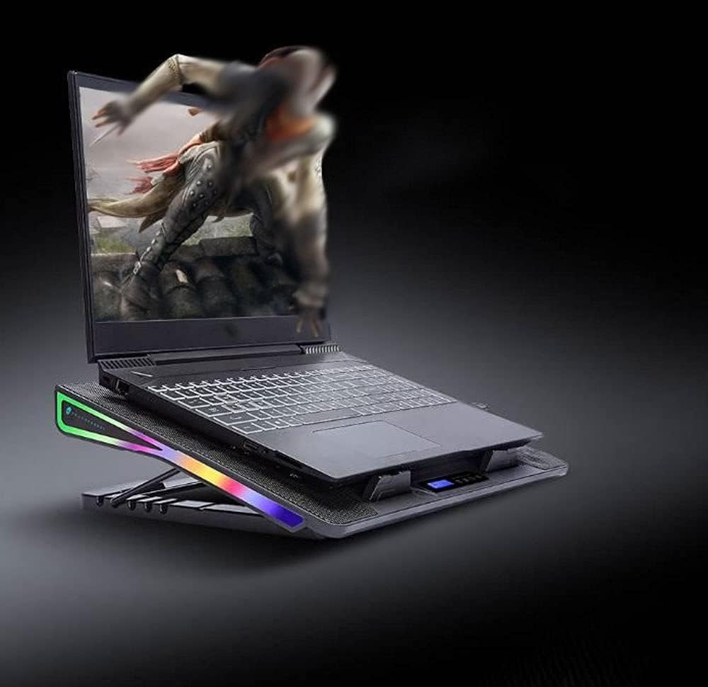 Laptop RGB Cooling Pad, Laptop Cooler, 2 USB Ports, Digital LED Display , Laptop Cooling Pad Stand with 1 Quiet Fan, Adjustable Hight , Suitable for 12-17.3 Inch Laptops, Black
