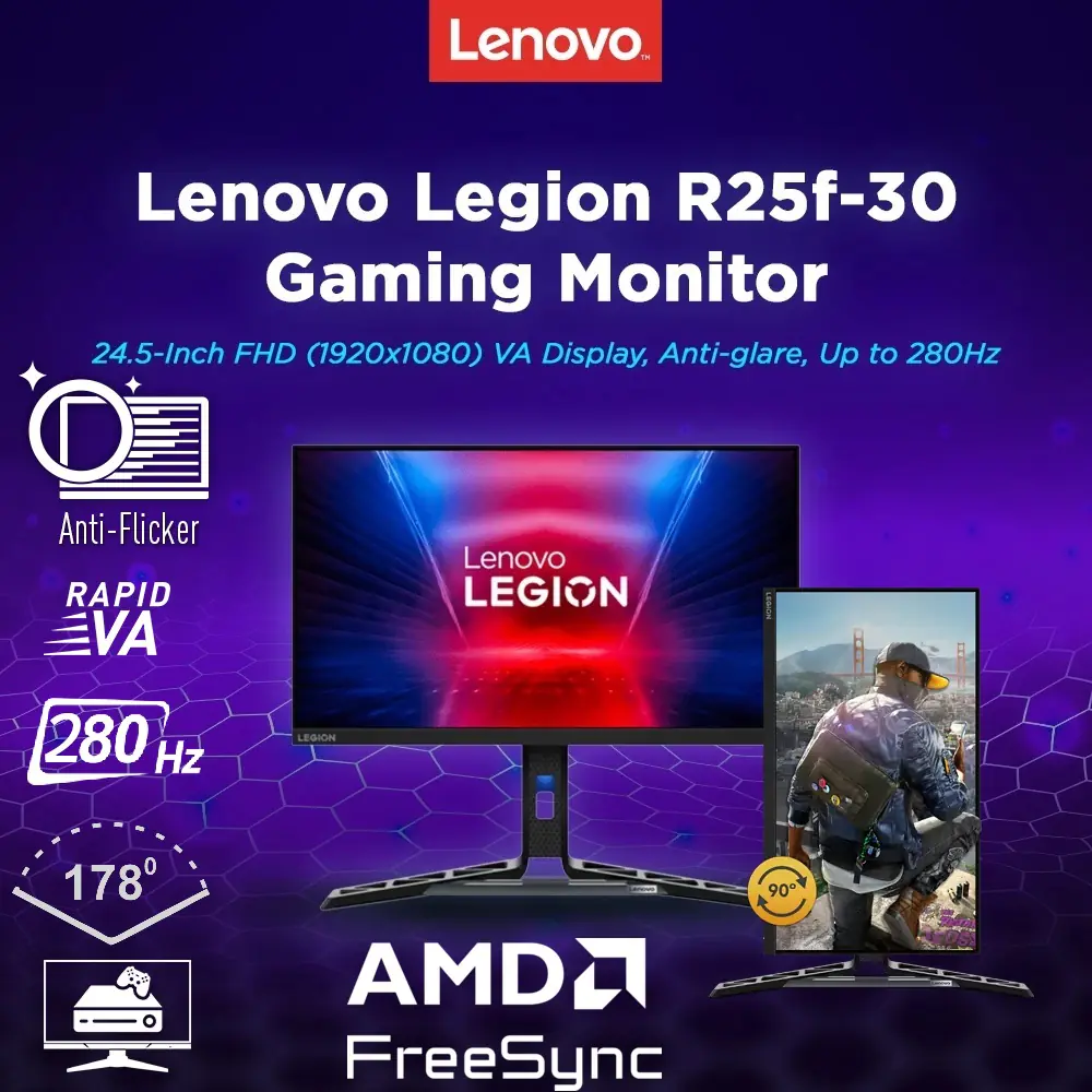 Lenovo Legion-R25f-30 | 25 Inch (63.50cm) | FHD 240Hz Gaming Monitor | 0.5ms, AMD FreeSync, 99% sRGB, 90% DCI-P3, 3Wx2 Speaker, 2xHDMI, 1xDP| Tilt, Swivel, Pivot, Height Adjust Stand | BLACK