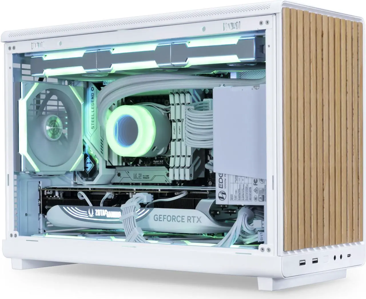 Lian Li A3-mATX Wooden Mini Tower – M-ATX/ITX Support, Wood Front Panel, Up to 10 Fans or 360mm Radiator, 430mm GPU, Modular PSU Mount, Steel Mesh Panels, White