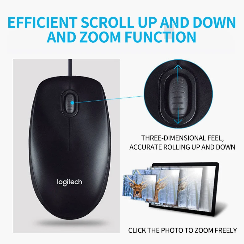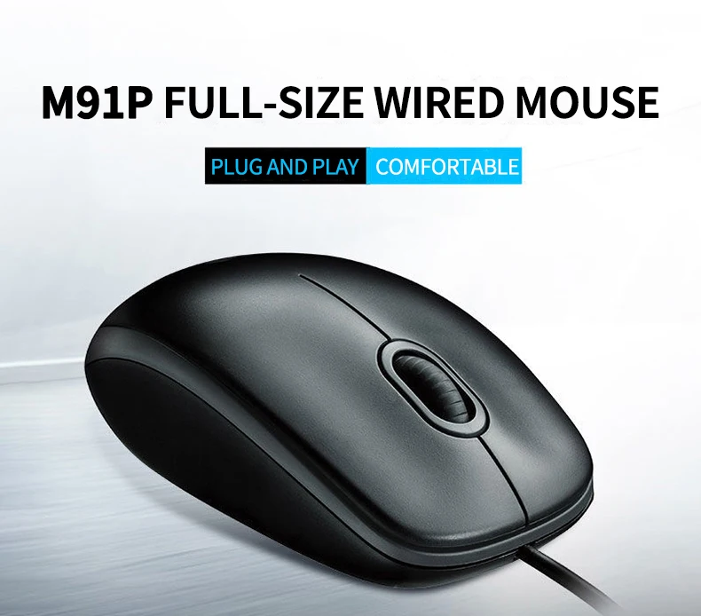 Logitech M90 Wired USB Mouse With 1000 DPI Optical Tracking, Ambidextrous Design, Plug & Play Simplicity, Full-Size Comfort For Windows / Mac / Laptop | Black