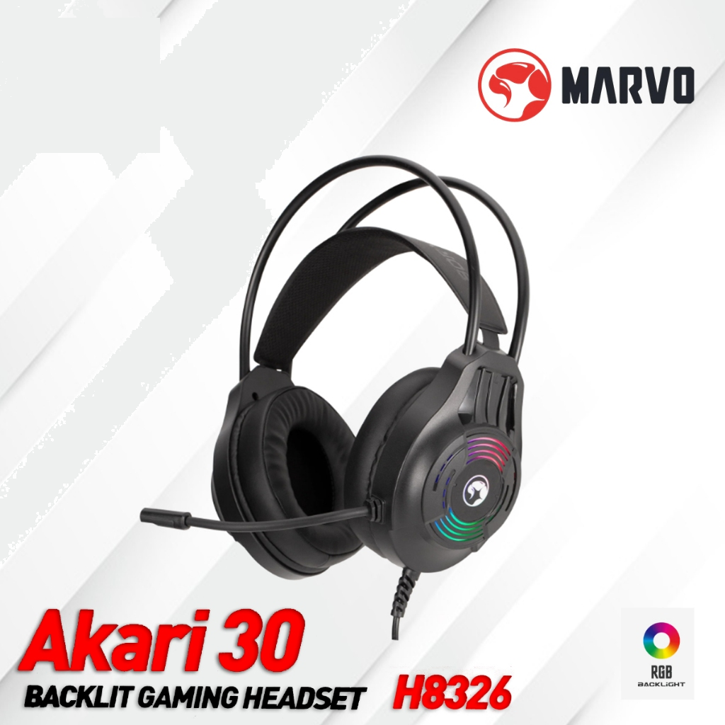 MARVO H8326 AKARI 30 | USB+3.5mm Gaming Headset, 40mm Drivers, Static RGB, Adaptive Headband, 360° Omnidirectional Mic, Volume Control, Lightweight (262g), PC Compatible