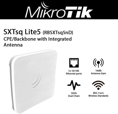 - The SXTsq Lite5 is a compact and lightweight outdoor wireless device with an integrated antenna