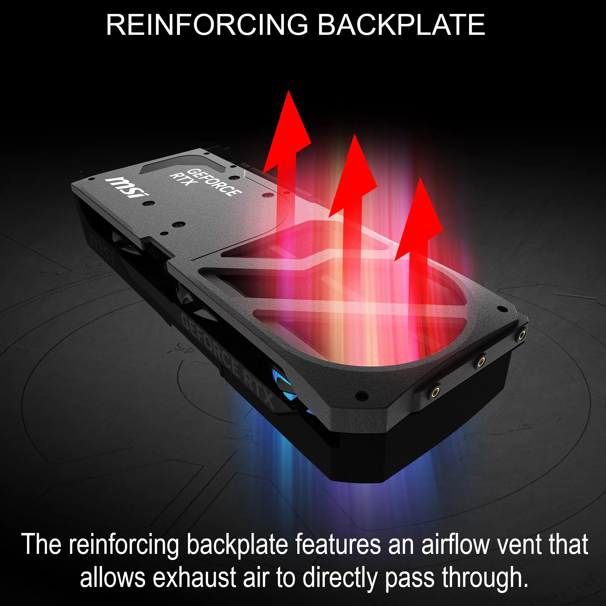- Reinforcing Backplate: The reinforcing backplate features an airflow vent that allows exhaust air to directly pass through.