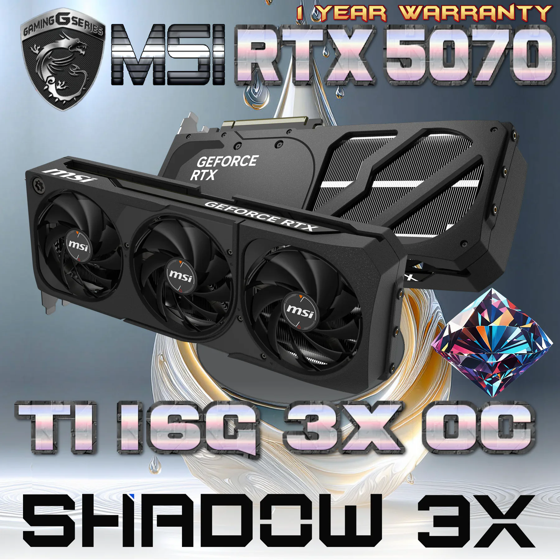 MSI GeForce RTX™ 5070 Ti 16G SHADOW 3X OC 256 bits SFF-Ready Graphics Card : PCI Express® Gen 5 ; 8960 Units CUDA ; 7680 x 4320 Max Res , 2467 MHz Extreme Performance ; OpenGL 4.6 | BLACK G507T-16S3C | 1 YEAR WARRANTY