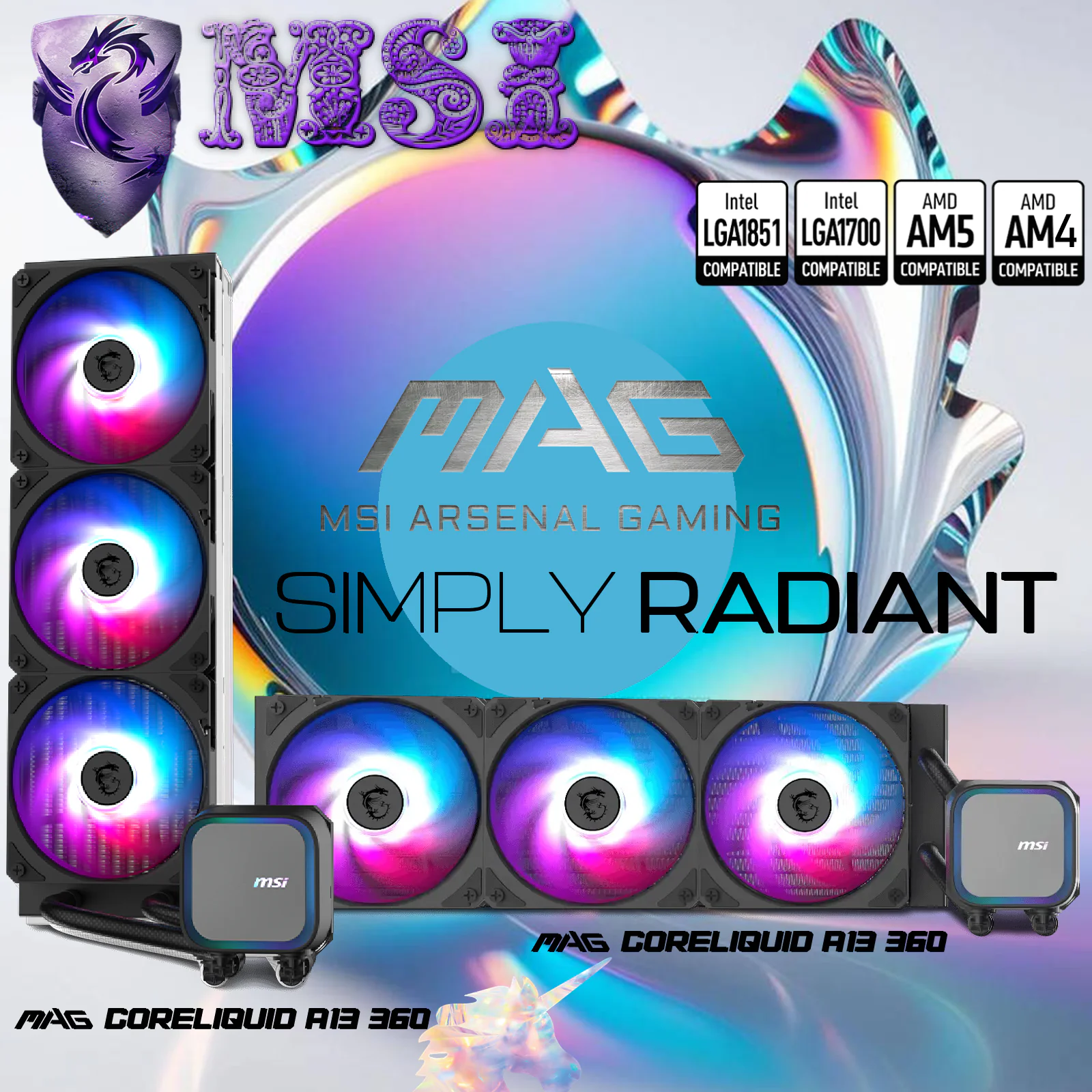 MSI MAG CORELIQUID A13 360 ARGB Liquid Cooler With 3x120mm CycloBlade Fans, High-Flow Pump, EZ Connect, EPDM Tubes, Copper Base, LGA1700/AM5 Support | BLACK