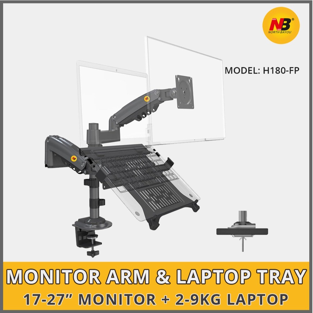 NB H180 FP Gas Spring Dual Arm Monitor & Laptop Mount – Fits 22″–32″ Monitors / 10″–17″ Laptops, 360° Rotation, +85°/–30° Tilt, 2–12KG Load, VESA 75×75/100×100, Cable Management