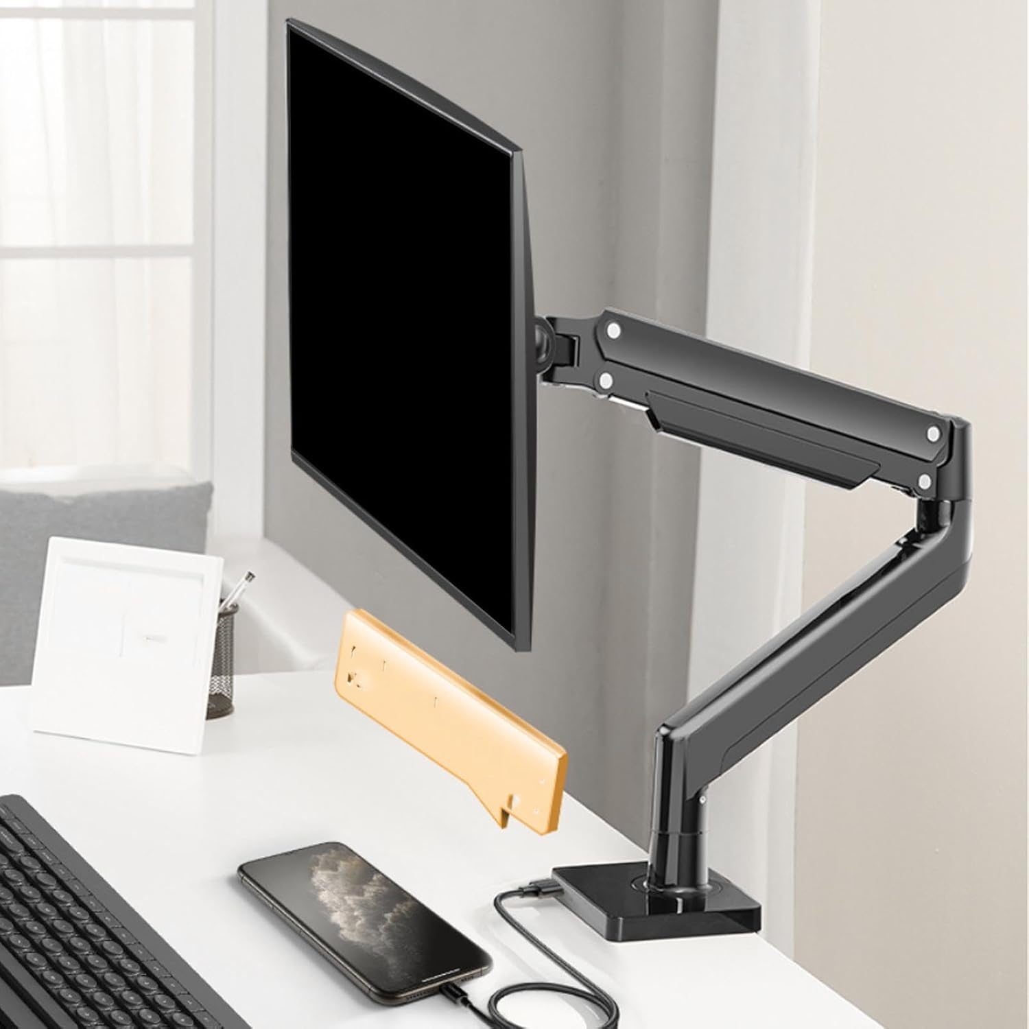 - Space-Saving Hanging Design : Frees up valuable desk space by lifting the monitor off the surface, keeping workstations clean and organized.