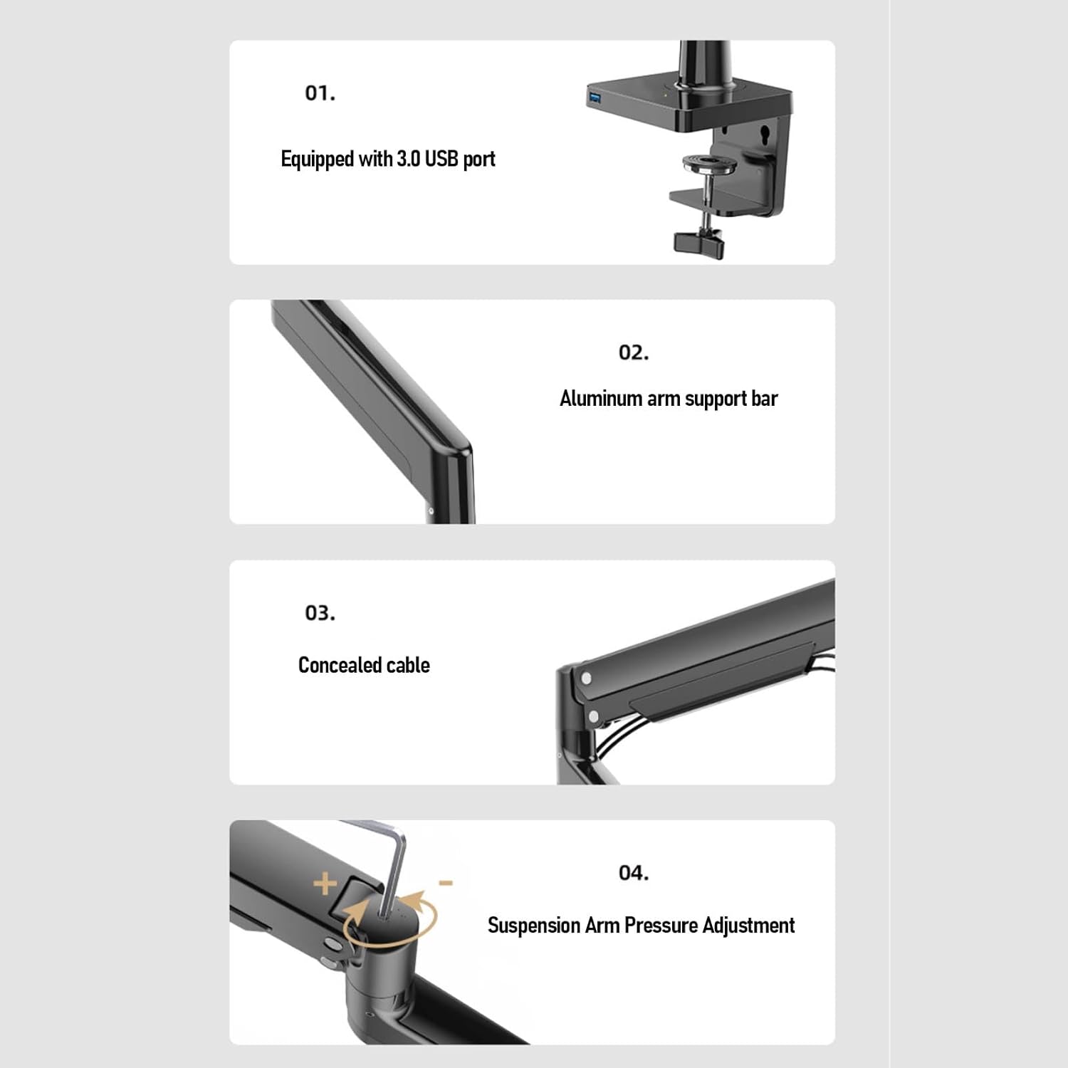 - C-Clamp & Grommet Base Support : Designed for desk mounting using clamp or grommet installation for secure attachment and flexible setup.