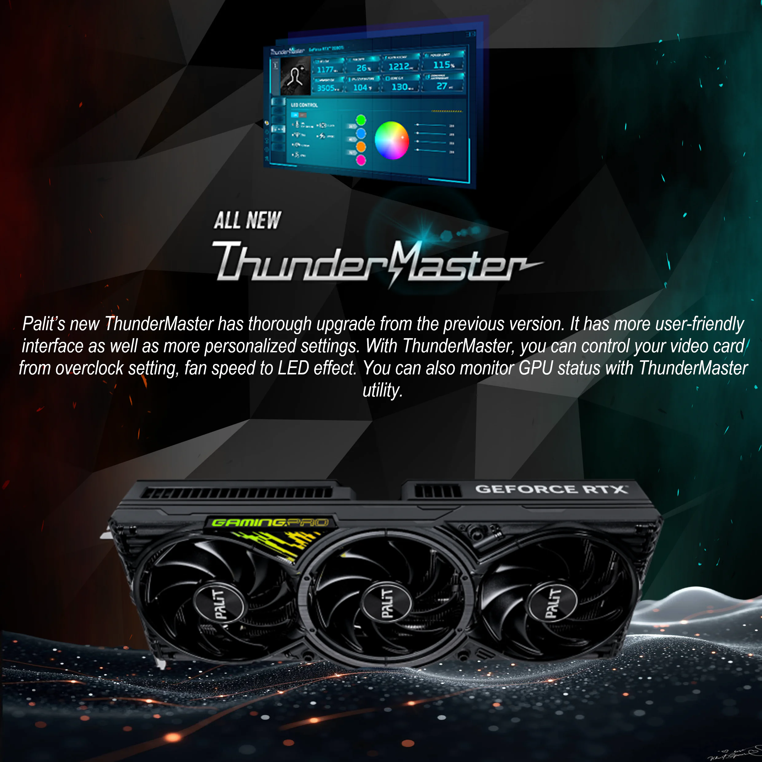 - ThunderMaster Software Utility : Take full control over lighting, fan speeds, overclocking, and real-time monitoring—all through a user-friendly interface designed for tinkerers.