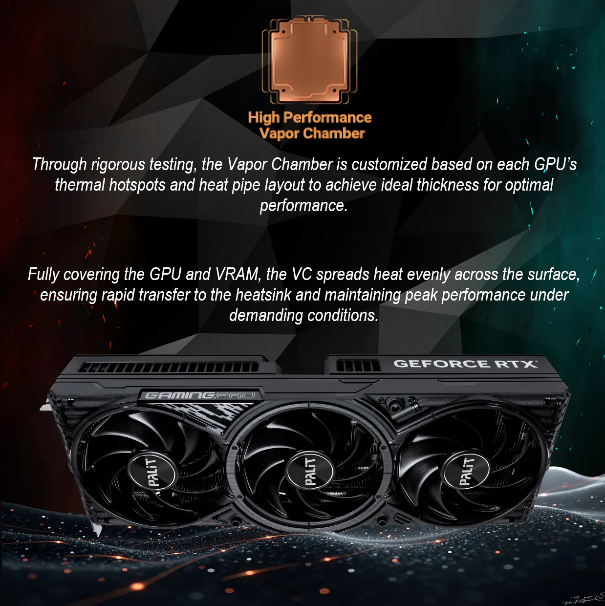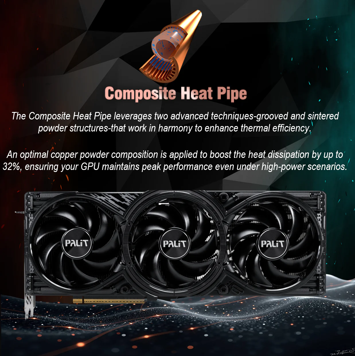 - Composite Heat Pipe & Vapor Chamber : Up to 32% better thermal conductivity using dual-structure heat pipes and a full-coverage vapor chamber tailored to GPU hotspots.