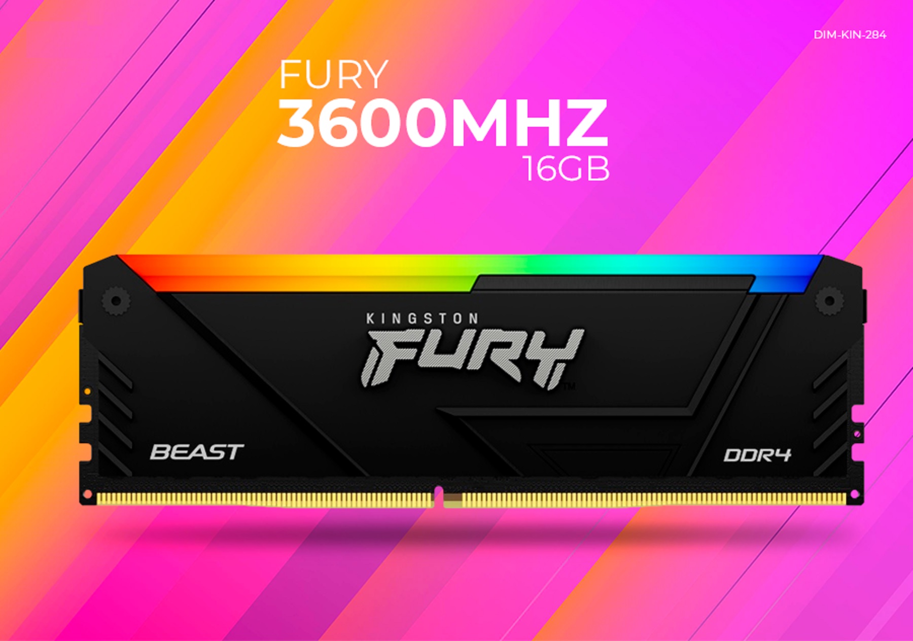 Ram Kingston Fury 16GB Beast 3600MT/s DDR4 CL18 Desktop Memory Single Module | Intel XMP | AMD Ryzen | Plug n Play | RGB Infrared Syncing | KF436C18BB2A/16