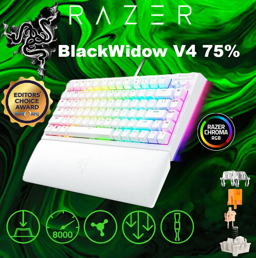 Razer BlackWidow V4 75% Mechanical Gaming Keyboard: Hot Swappable Design – Compact & Durable – Orange Tactile Switches – Chroma RGB – Roller & Media Keys – Wrist Rest – Snap Tap | White