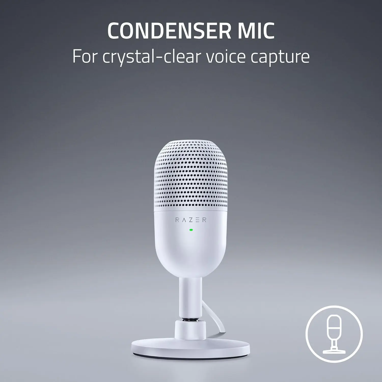 Razer Seiren V3 Mini USB Microphone, Ultra-Compact, Supercardioid Condenser, Tap-to-Mute, LED Indicator, Built-in Shock Absorber, Plug-and-Play, for Gaming/Streaming/Meetings