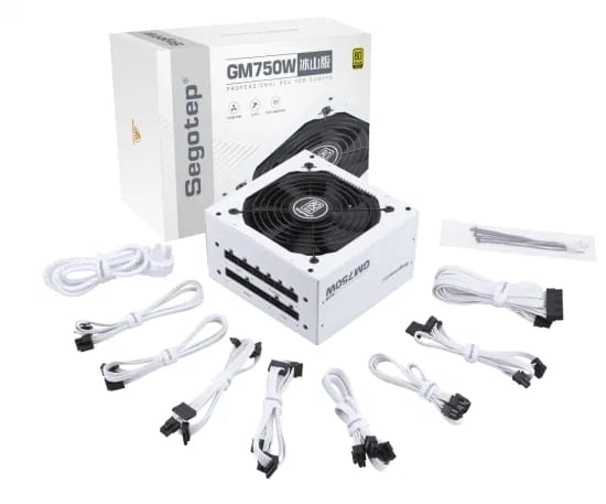 Segotep GM750W 750W Power Supply, 80 Plus Gold Full Modular PCIe 5.0 & ATX 3.0 Gaming PSU For NVIDIA RTX 20/30/40 Series & AMD GPU, 120mm Silent FDB Fan – WHITE