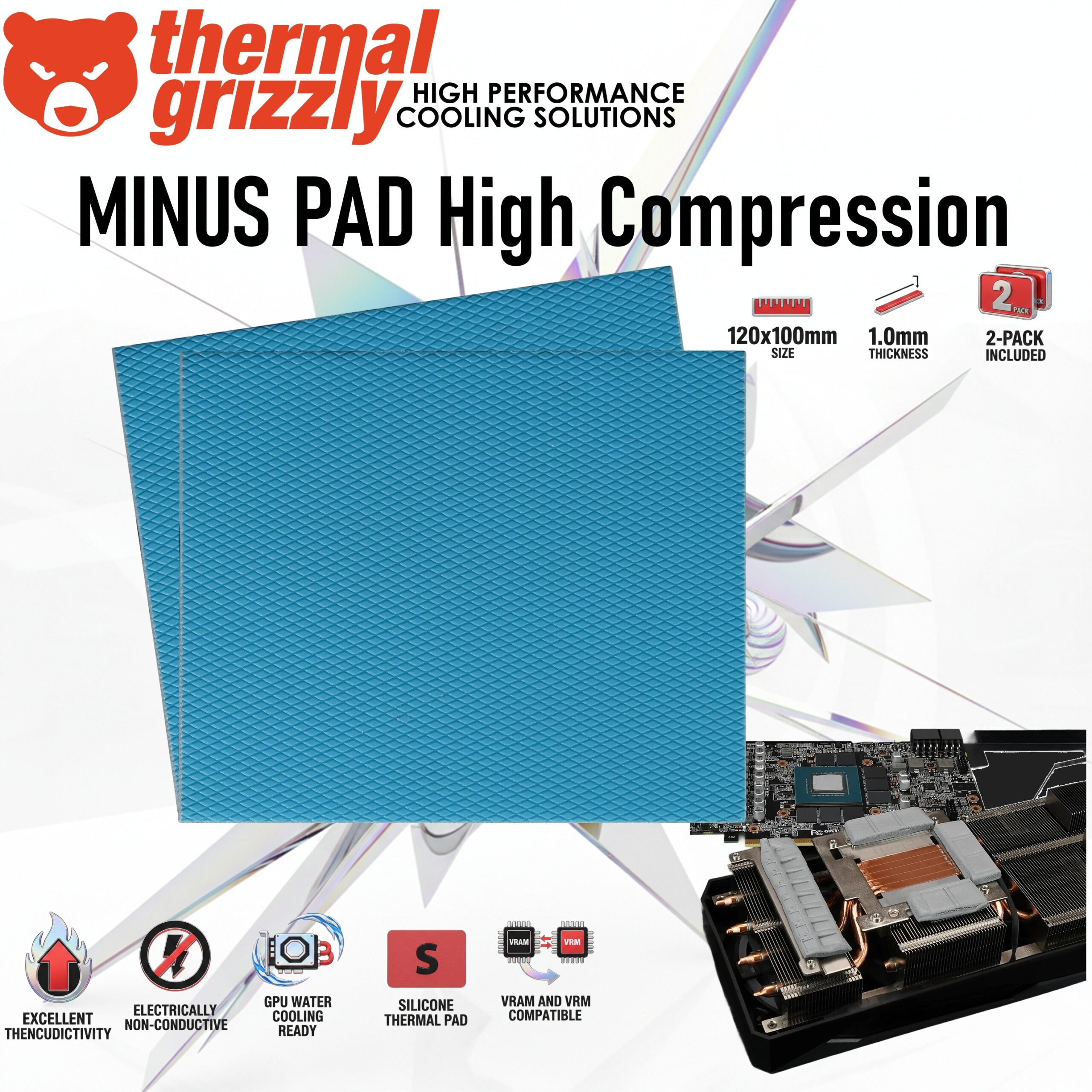 Thermal Grizzly MINUS PAD High Compression 120x100x1.0mm Thermal Pad 2-Pack, High Compressibility, Excellent Thermal Conductivity, Non-Conductive Silicone , for SSDs, GPUs & Electronics | TG-MP-HC-120-100-10-2