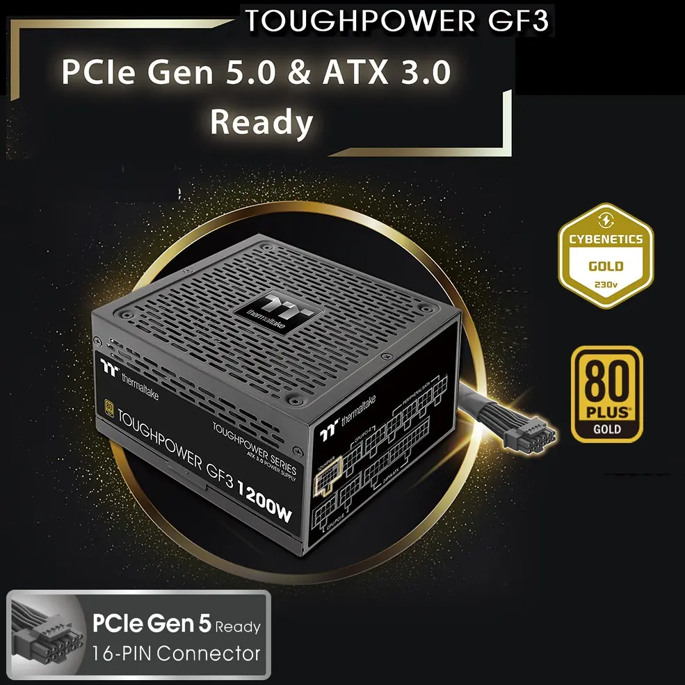 THERMALTAKE Toughpower GF3 750W Gold Power Supply – TT Premium Edition: 80 PLUS Gold Certified PSU ; Native PCIe 12+4pin Connector for PCIe 5.0 GPUs ; Fully Modular Design ; Ultra-quiet Smart Zero Fan ; Strict Voltage Regulation, 135mm Fluid Bearing Fan for Superior Cooling