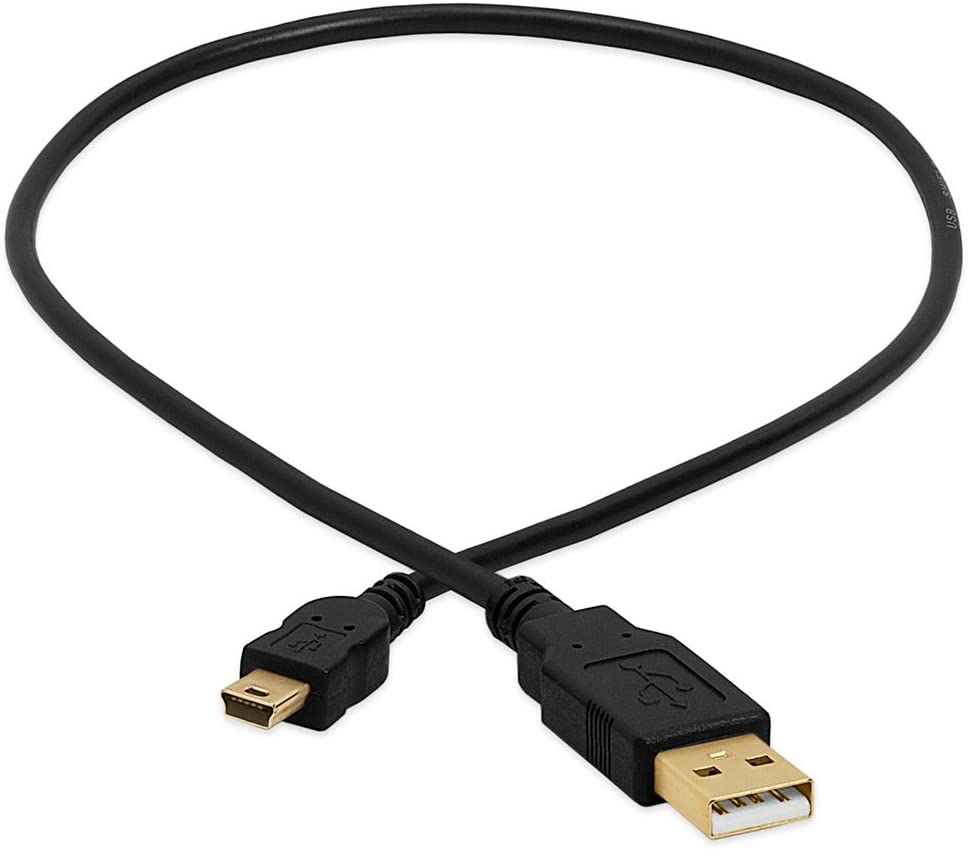 USB 2.0 Cable A to Mini B 5 Pin Male High Speed USB Charger Data Cord Gold-Plated – 1.5 Feet Black