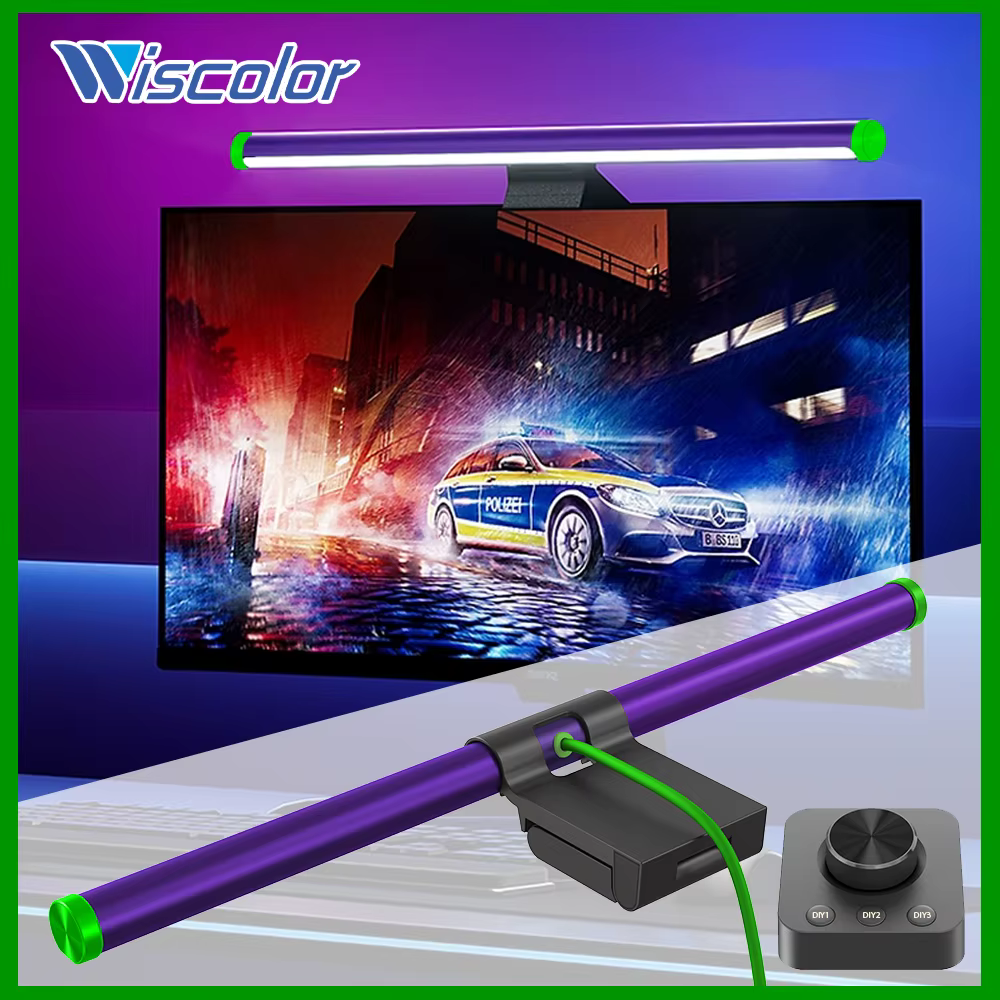 Wiscolor 55CM Monitor Lightbar – USB LED Screen Lamp, Stepless Dimming, Remote Control, Eye-Care, Aluminum, Purple