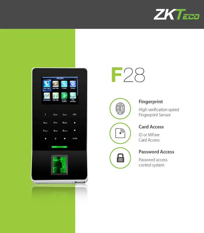 ZKTeco F28 WiFi Fingerprint Time Attendance & Access Control Machine | 3,000 Fingerprints, 10,000 Cards, 100K Logs | Optical Sensor